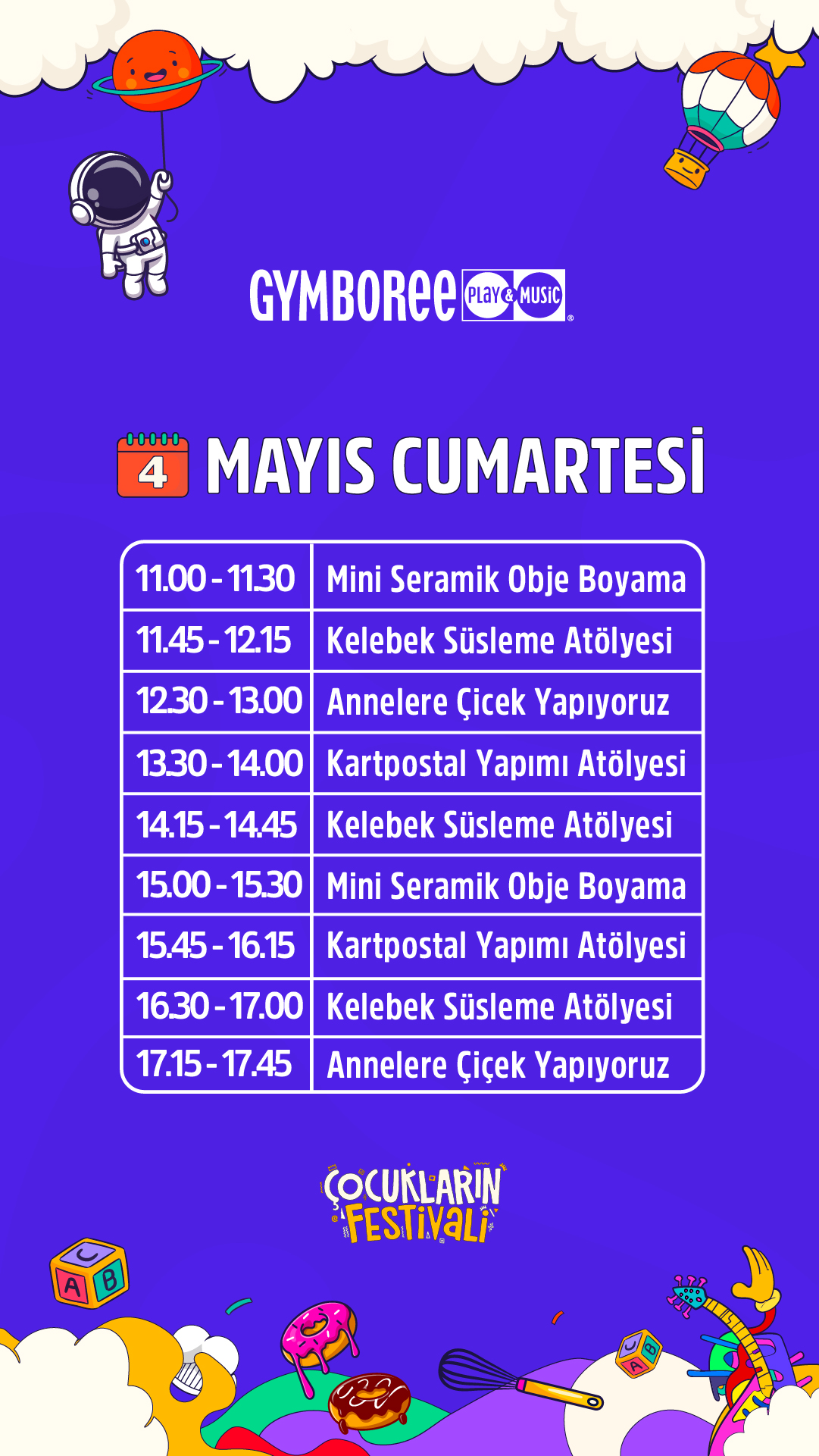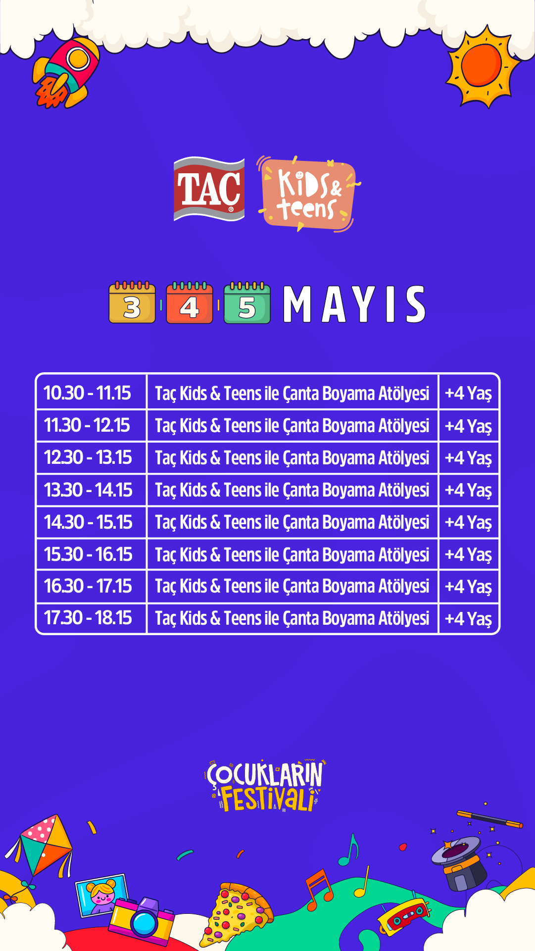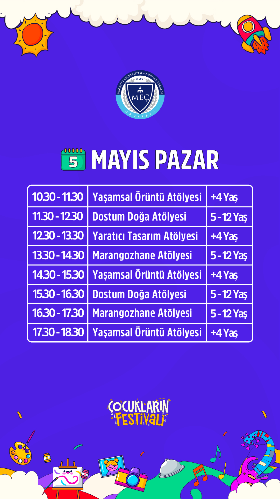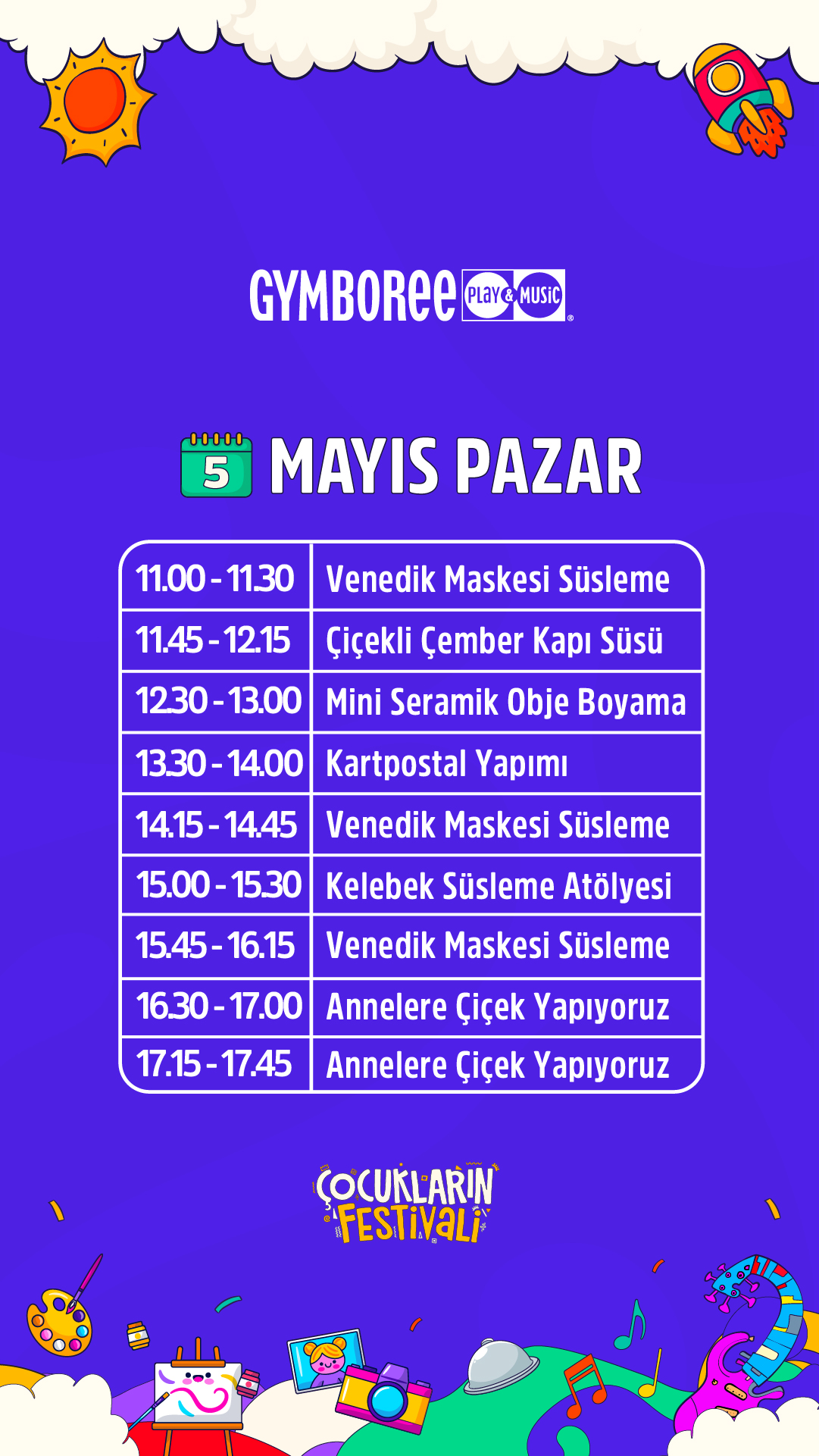 Festivalin, çocukların keyifli vakit geçirebileceği birçok eğlenceli ve sanatsal etkinliği sunmasının yanı sıra katılım gösteren çocukların, kişisel becerilerini keşfedebilecekleri, bu becerileri fark edebilecekleri ve yeteneklerini ortaya çıkarabilecekleri deneyimsel aktiviteler sunmaktadır.