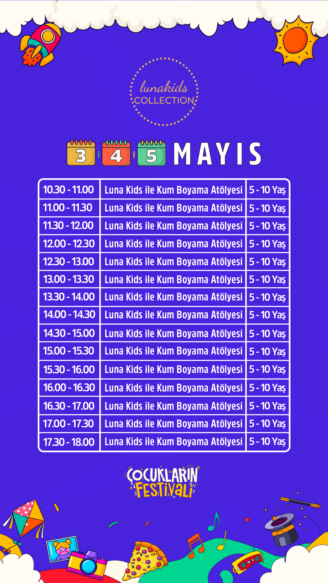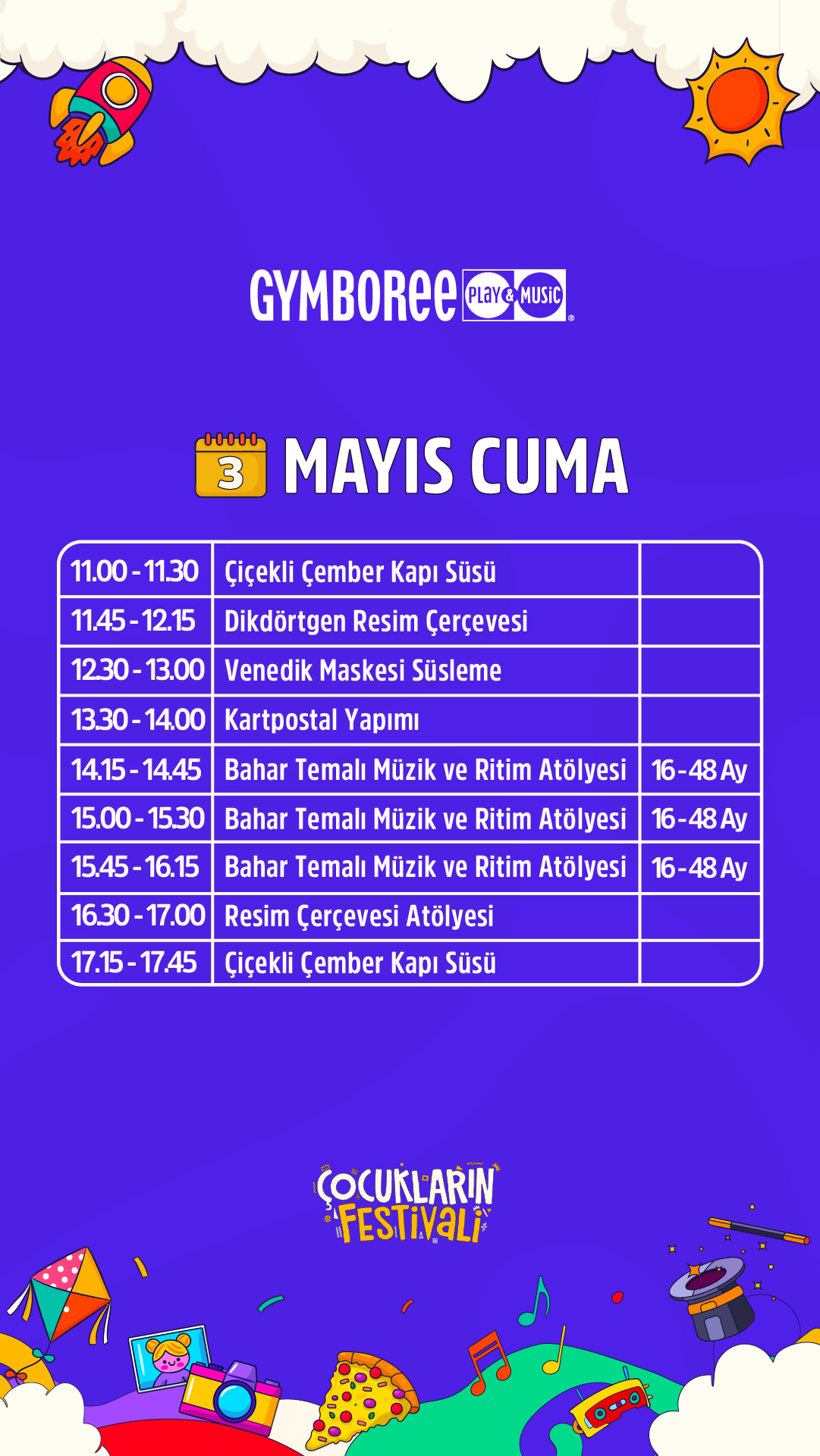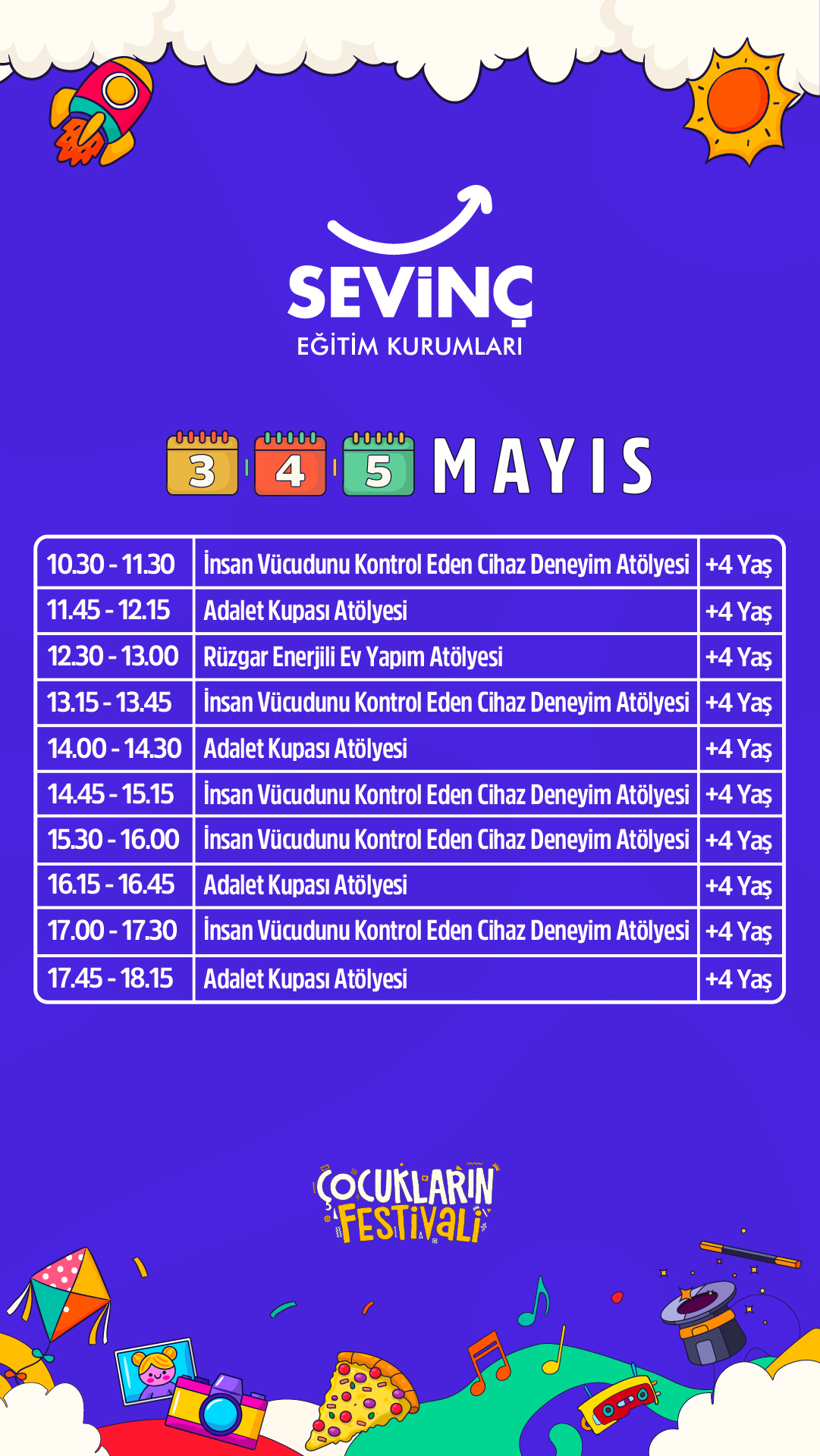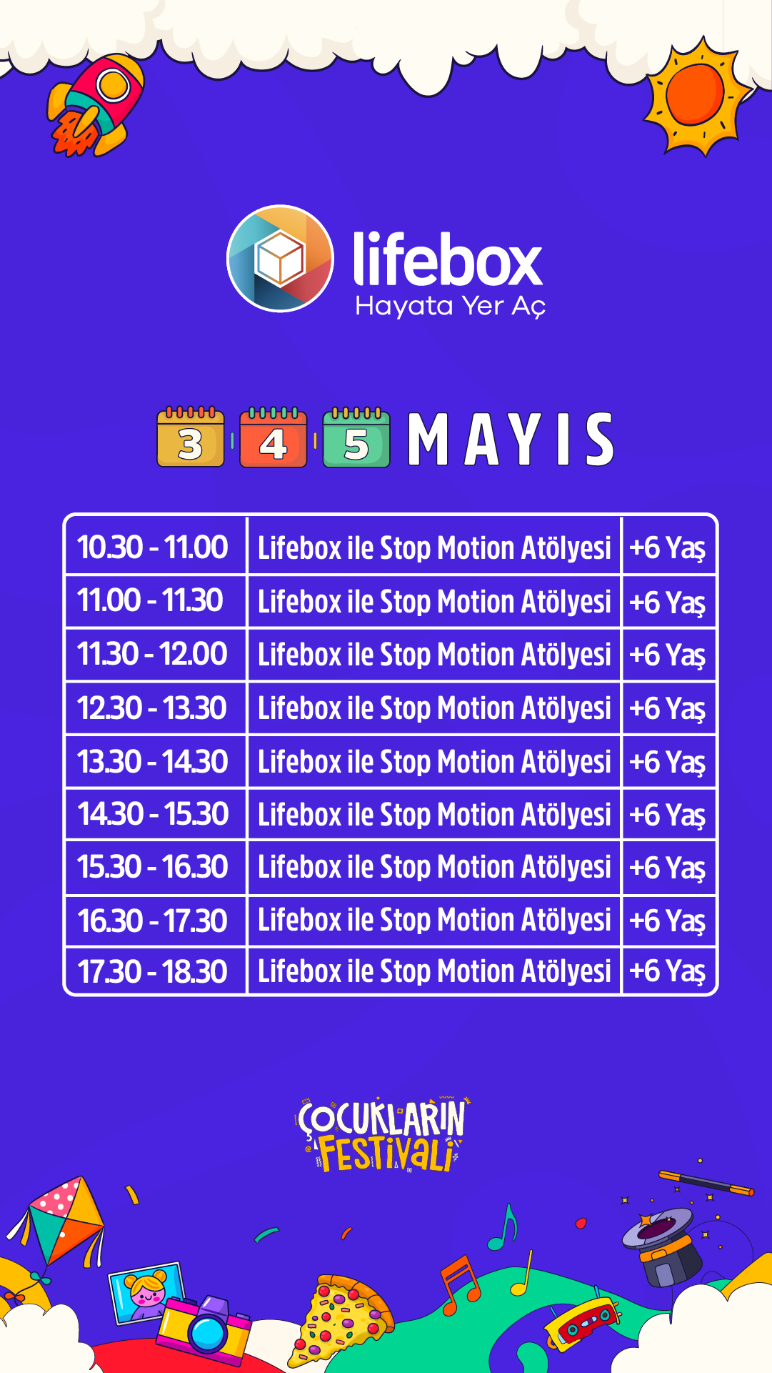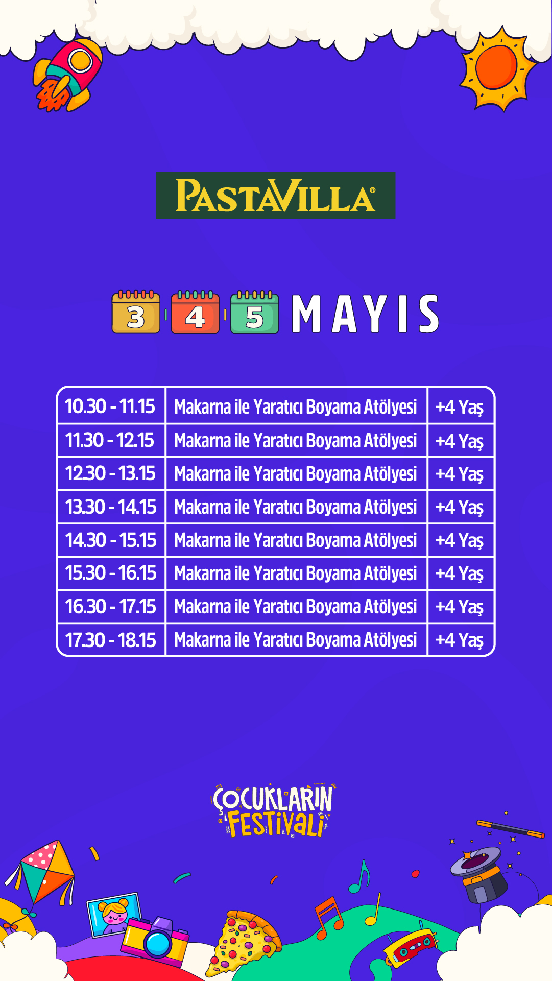 Festivalin, çocukların keyifli vakit geçirebileceği birçok eğlenceli ve sanatsal etkinliği sunmasının yanı sıra katılım gösteren çocukların, kişisel becerilerini keşfedebilecekleri, bu becerileri fark edebilecekleri ve yeteneklerini ortaya çıkarabilecekleri deneyimsel aktiviteler sunmaktadır.