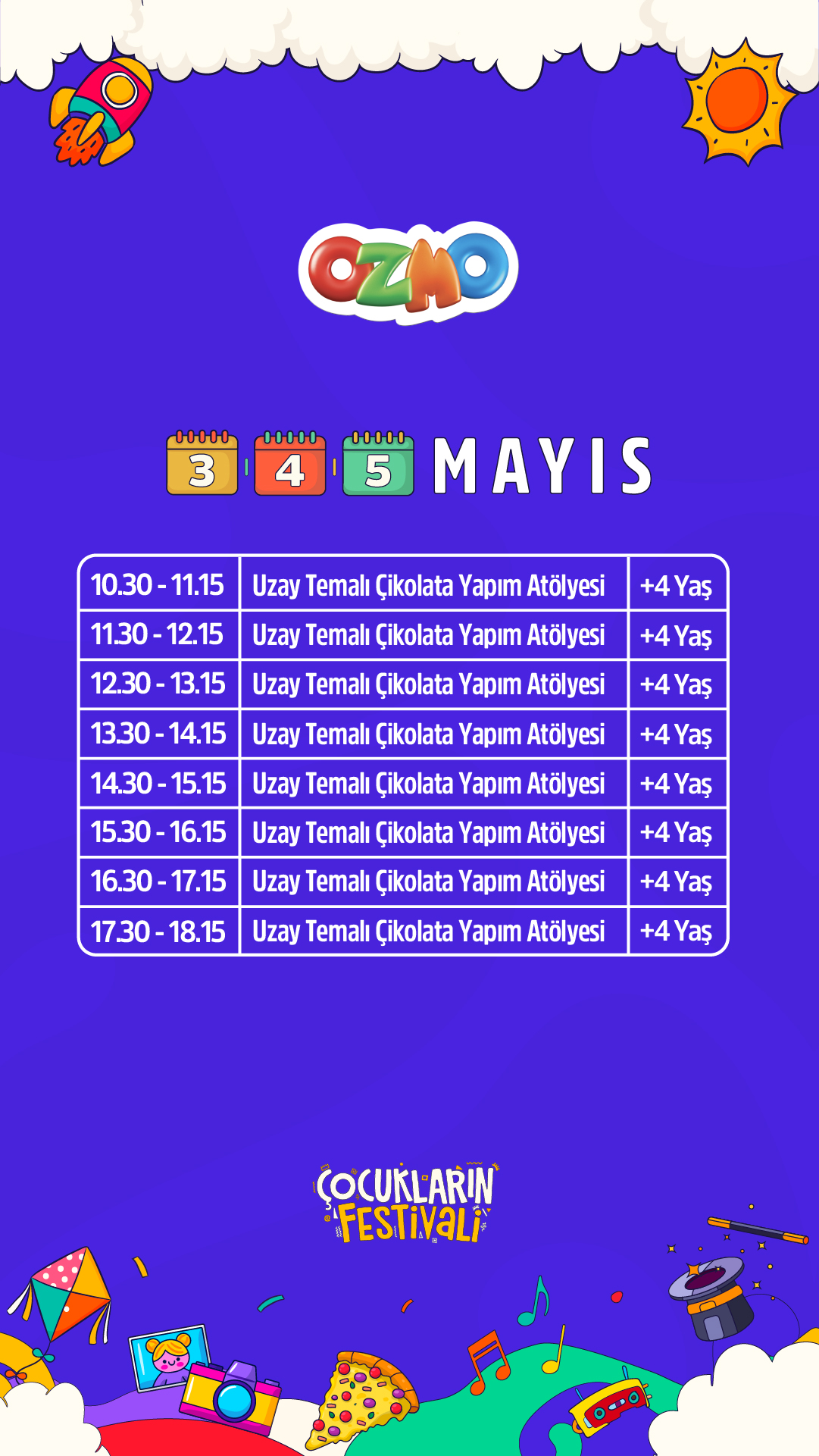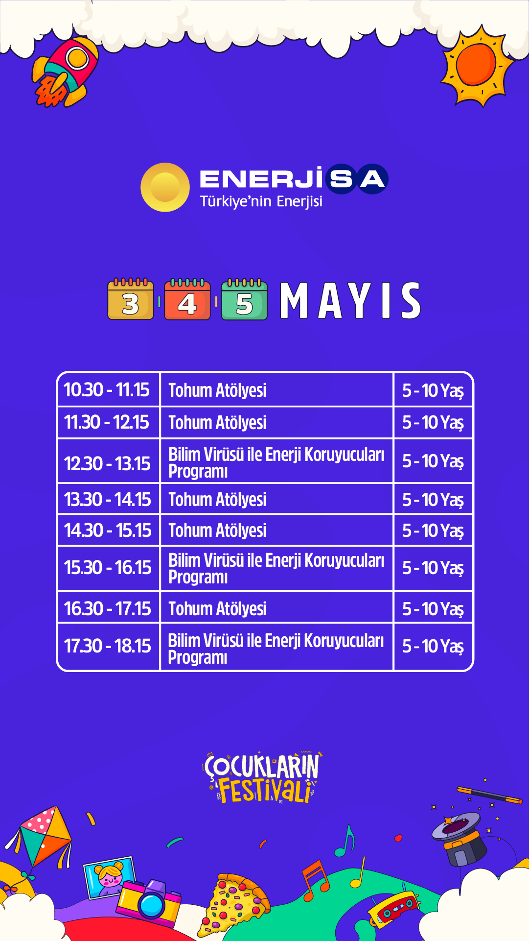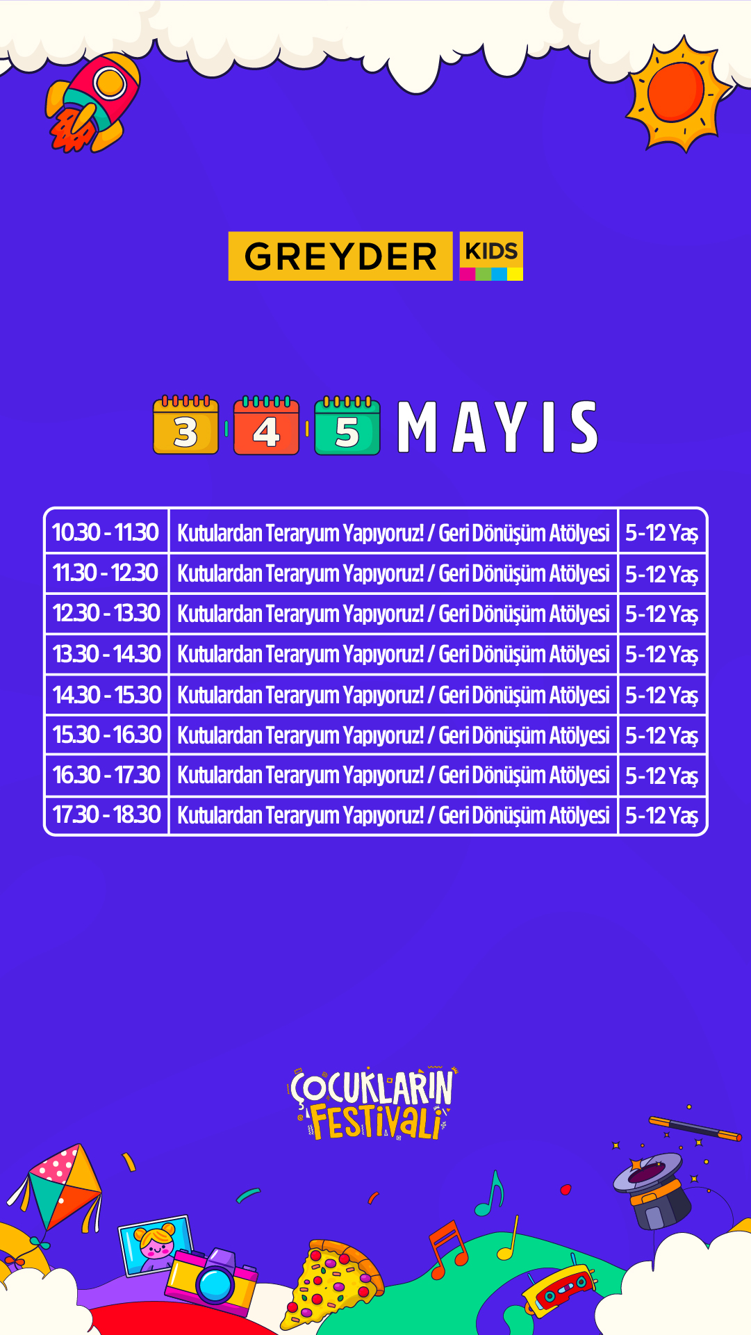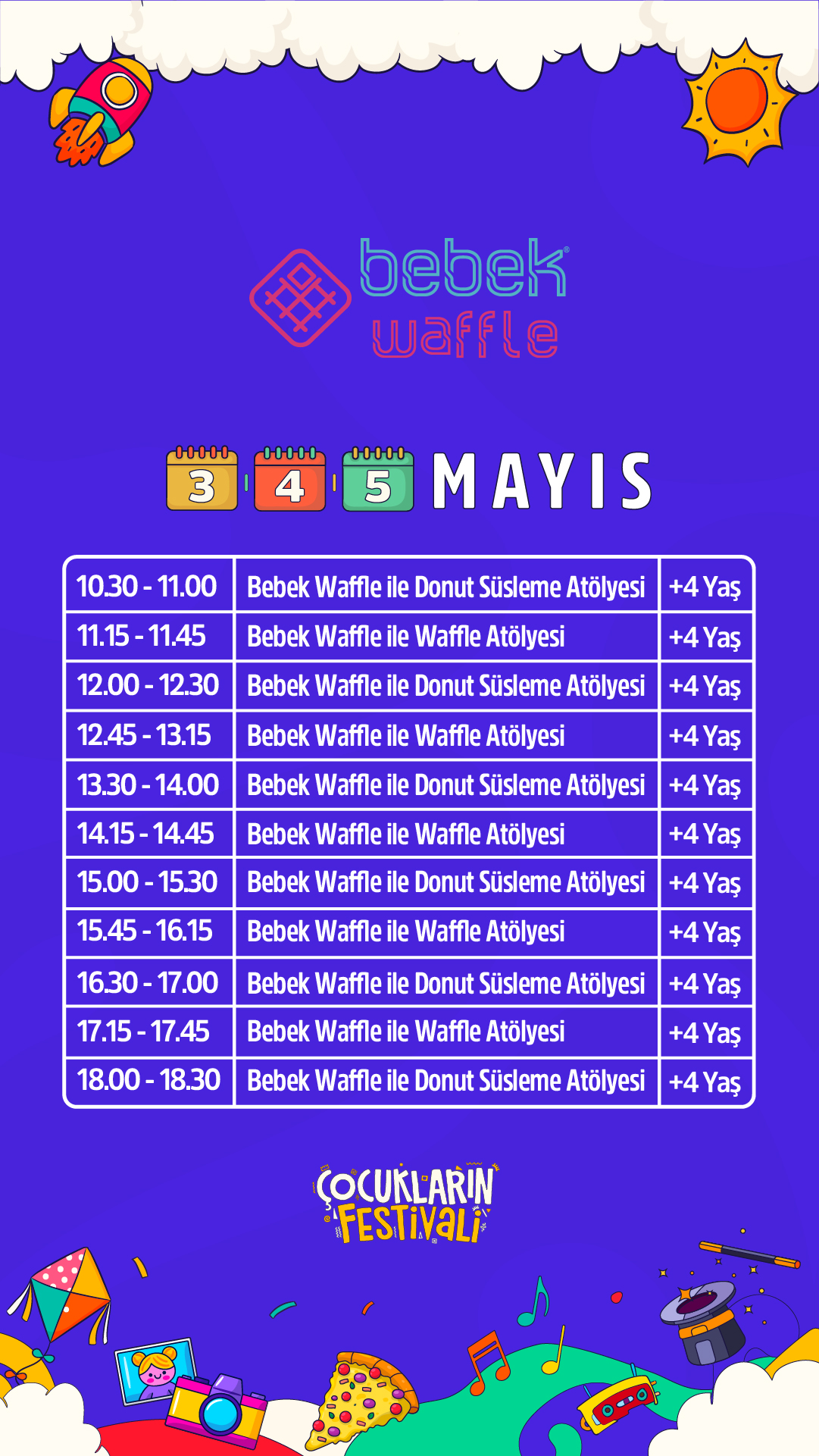 Festivalin, çocukların keyifli vakit geçirebileceği birçok eğlenceli ve sanatsal etkinliği sunmasının yanı sıra katılım gösteren çocukların, kişisel becerilerini keşfedebilecekleri, bu becerileri fark edebilecekleri ve yeteneklerini ortaya çıkarabilecekleri deneyimsel aktiviteler sunmaktadır.