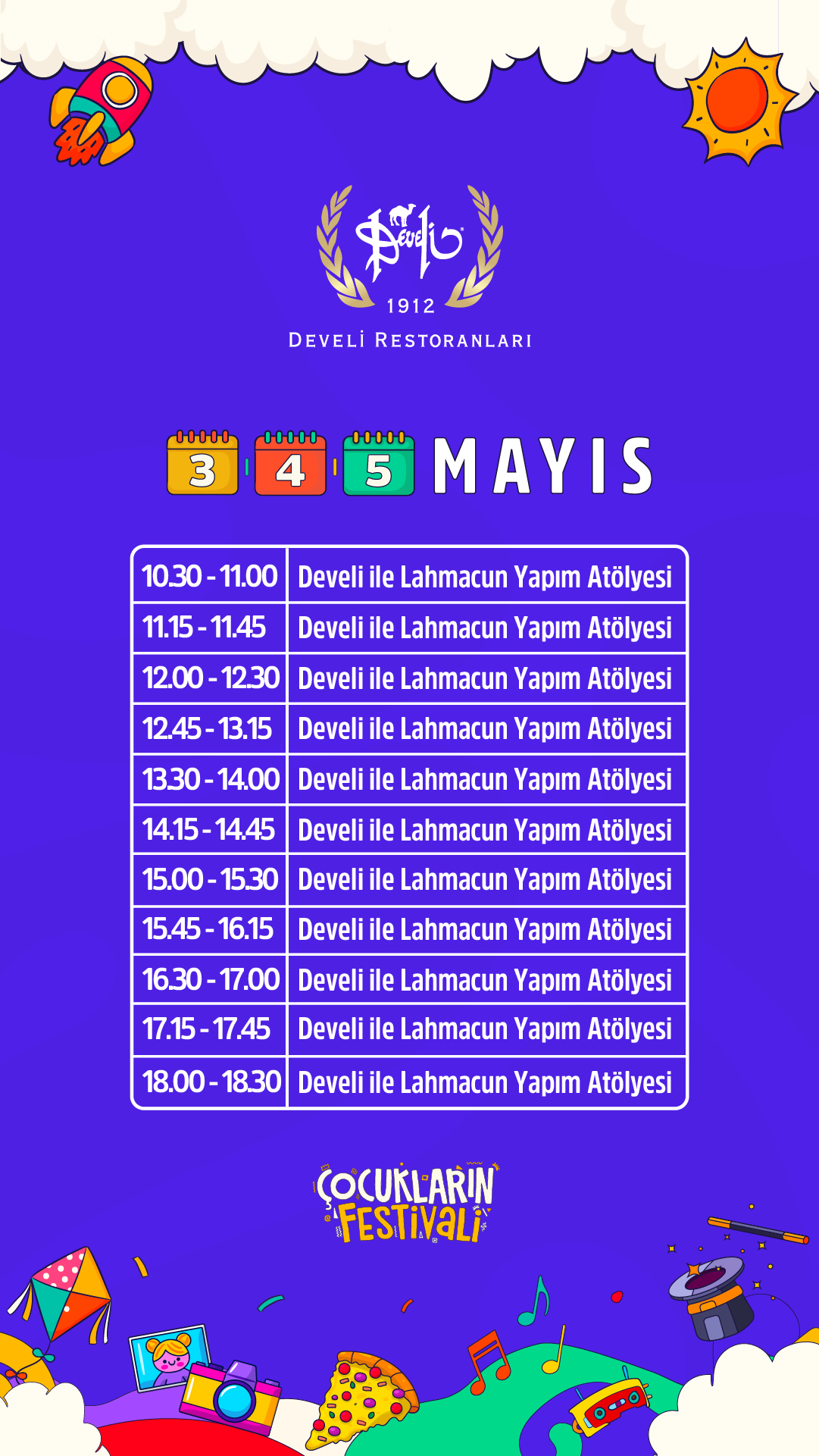 Atölye boyunca çocuklarla mutfakta eğlenceli anlar yaşanırken, aileler ile de sohbet ederek festivale renk katacak.
