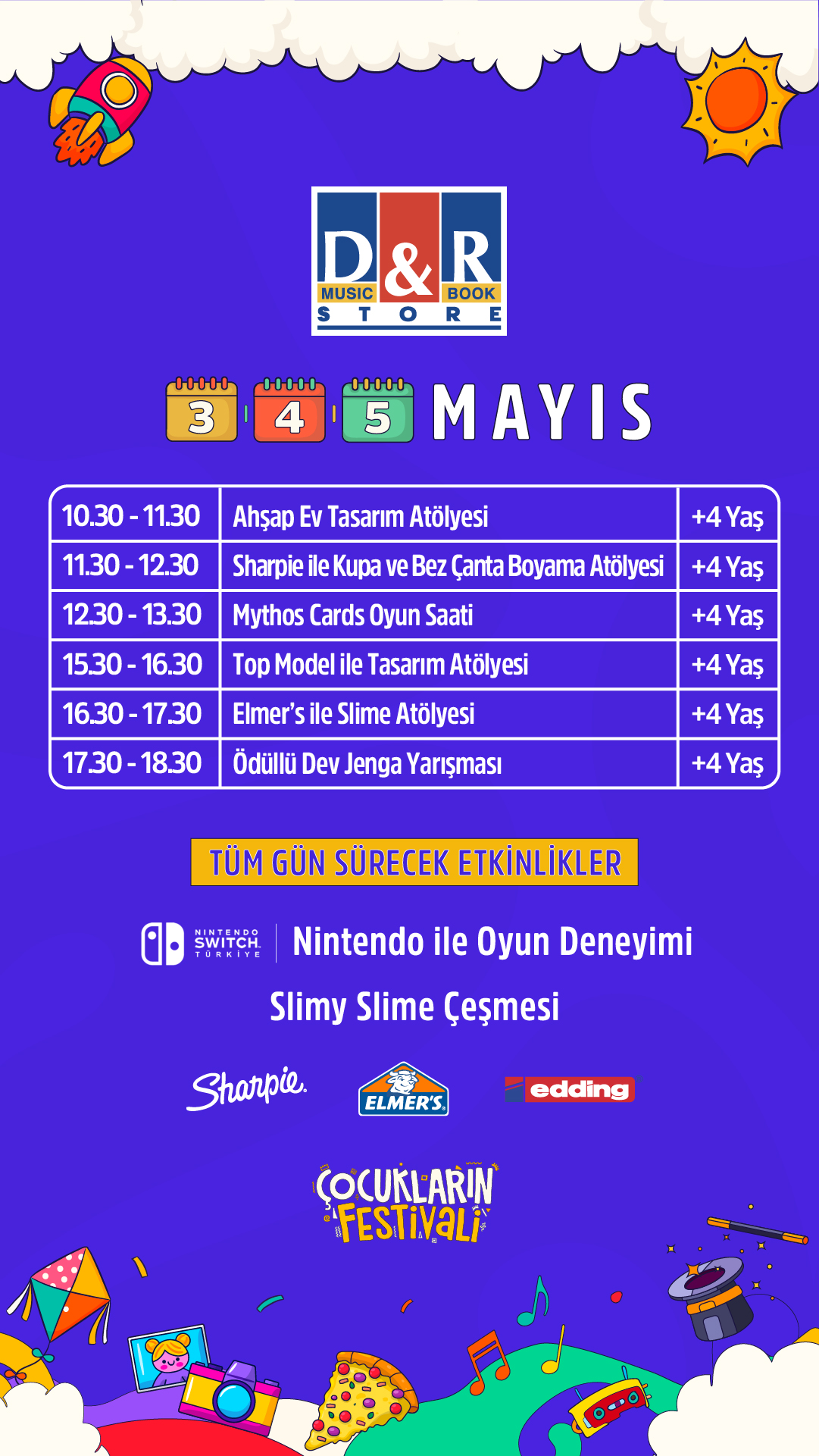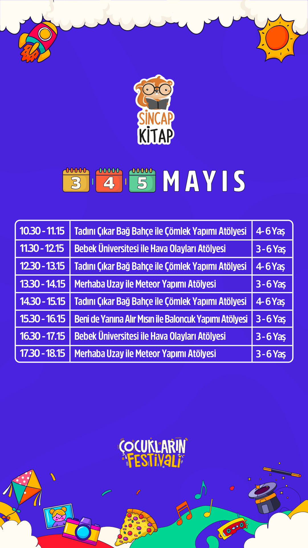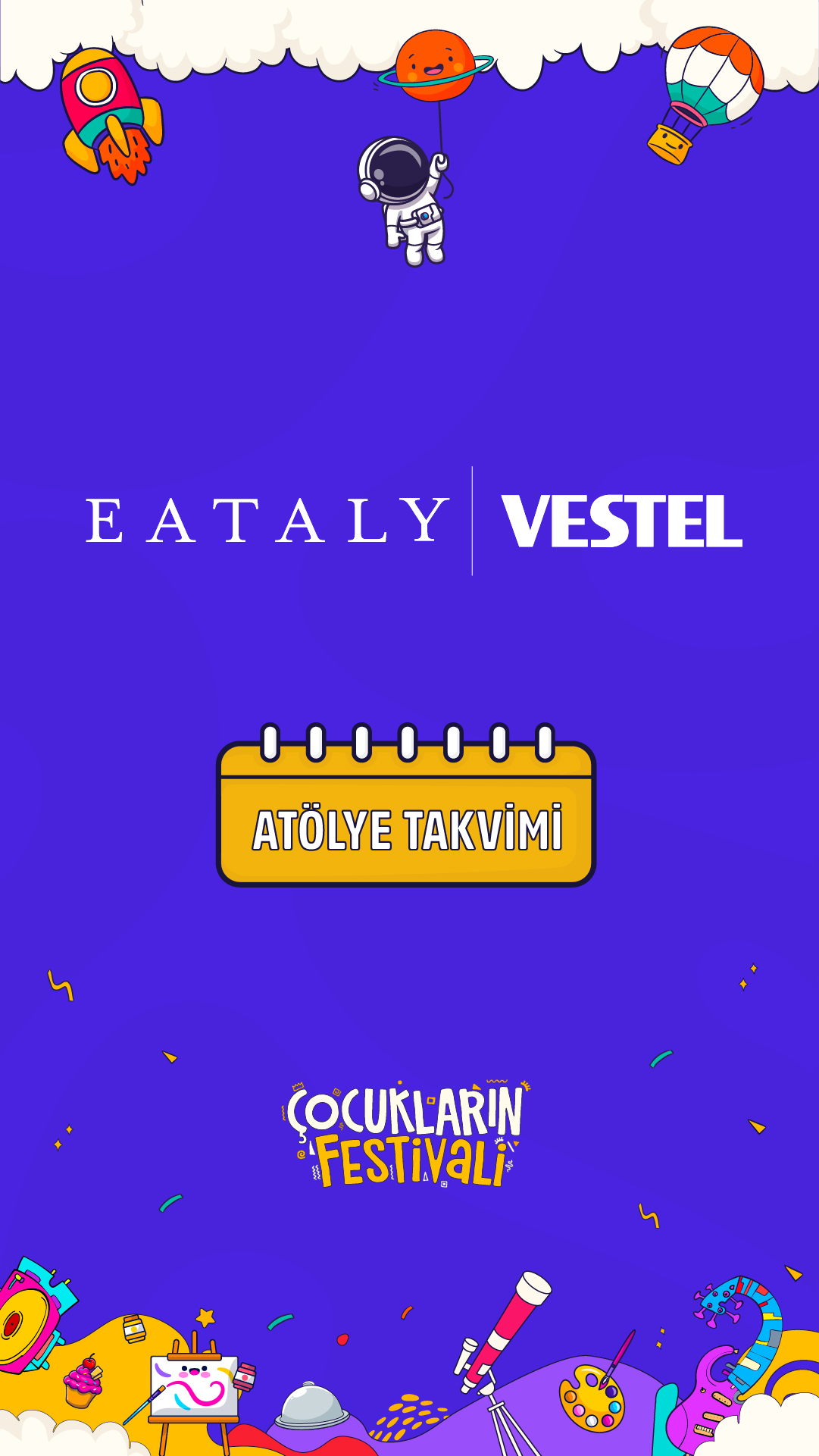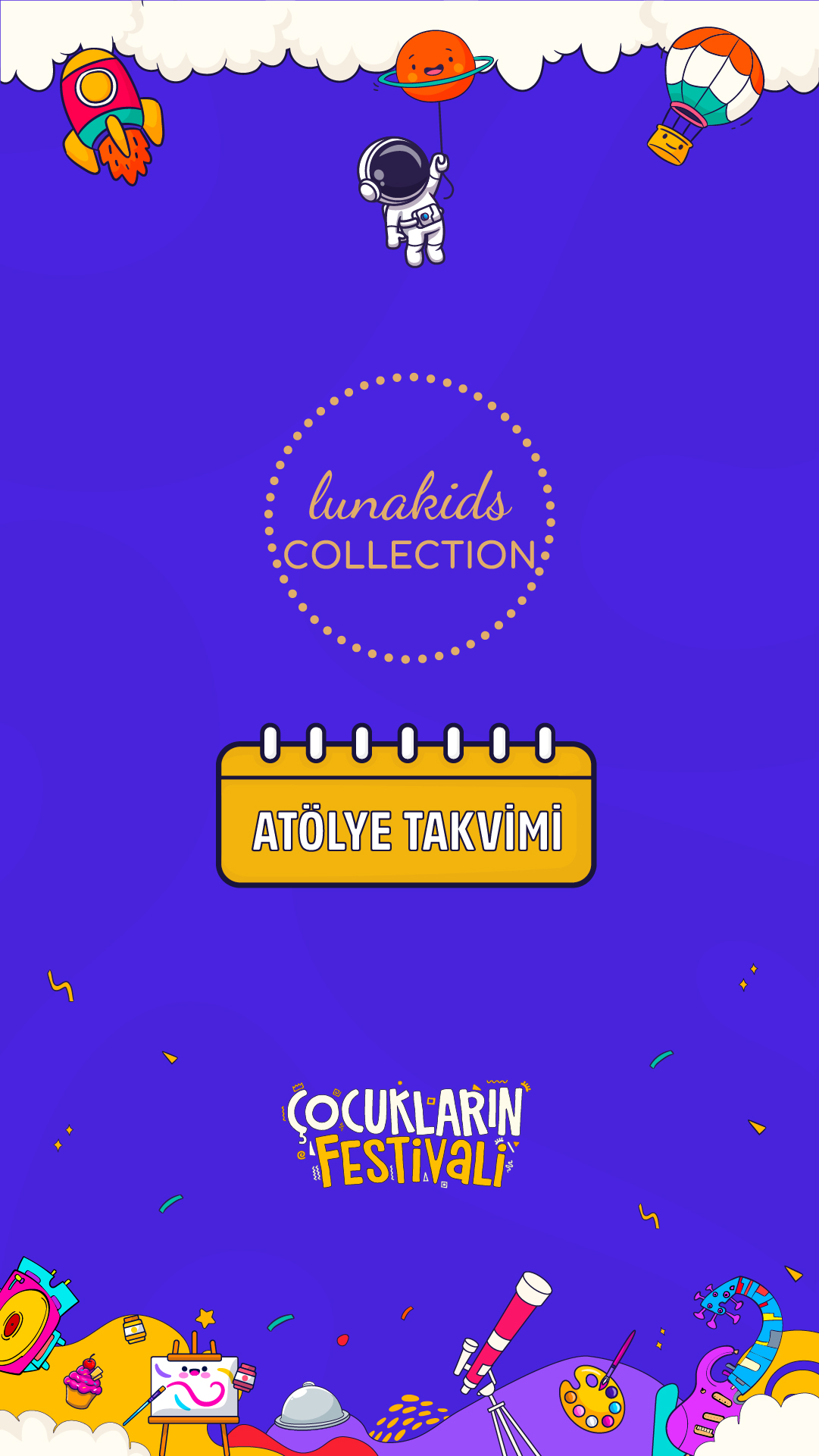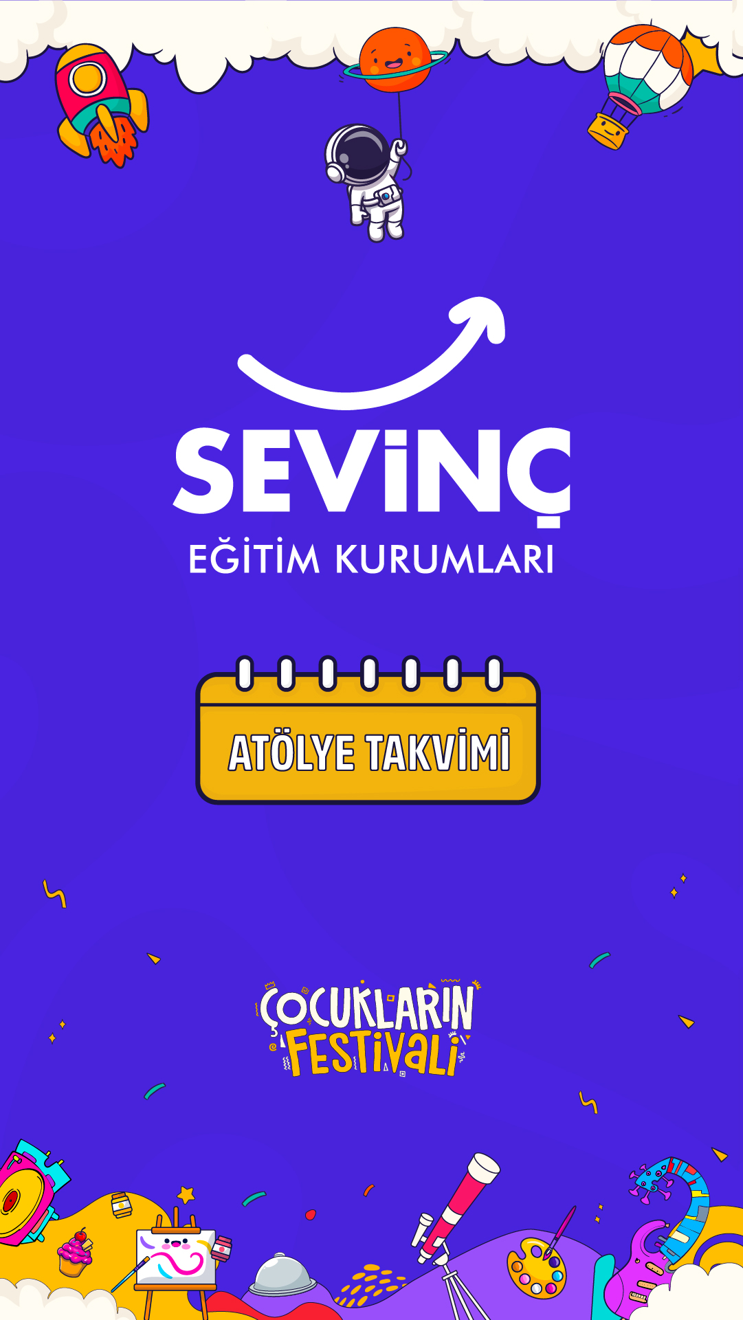 Çocuk Sanat, Bilim, Eğlence Festivali (0-3) - 15 yaş arası tüm çocukları ve ebeveynleri hem eğlenceli hem de öğretici birçok sanat bilim ve eğlence aktivitesi ile buluşturmayı hedefleyen bir oluşumdur.
