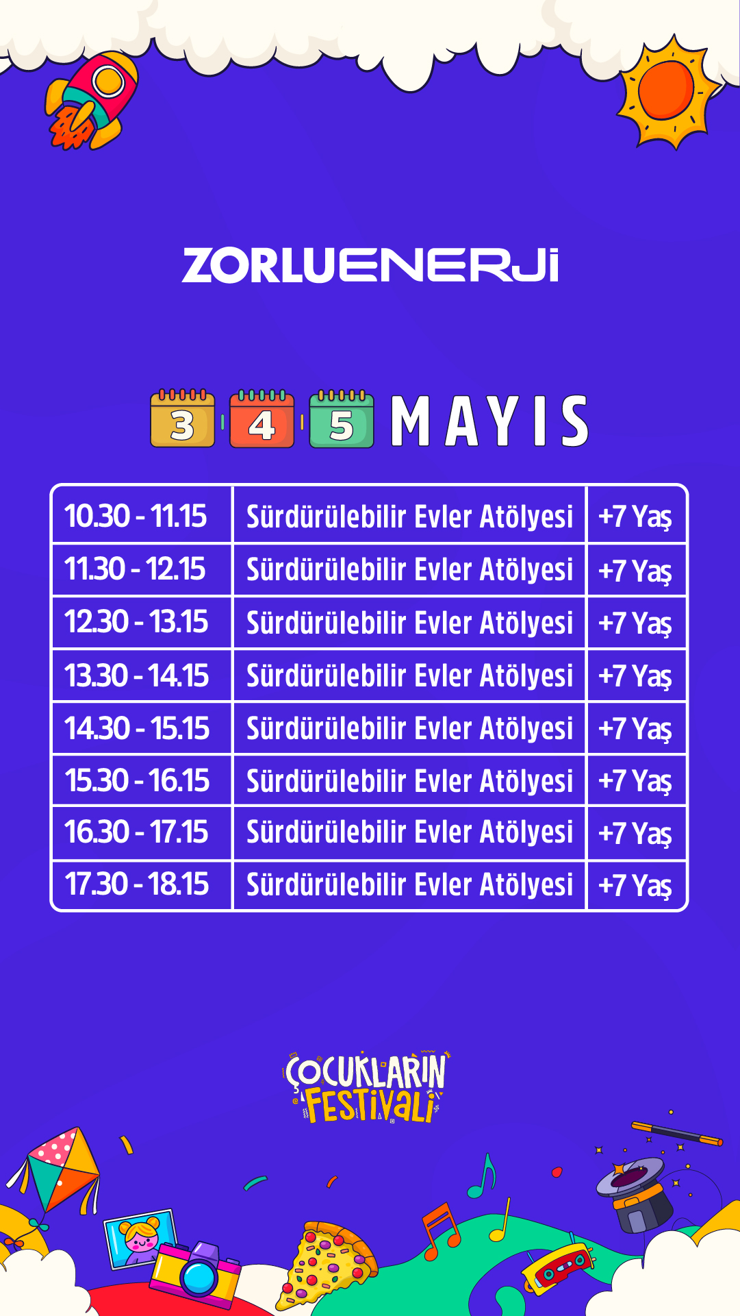 Bu sene de Zorlu PSM’de gerçekleşecek Çocukların Festivali’nde birbirinden önemli isimlerin katılım göstermesi ile atölye etkinlikleri gerçekleştirilerek çocuklara unutulmaz bir 3 günlük festival serüveni yaşatılacak.